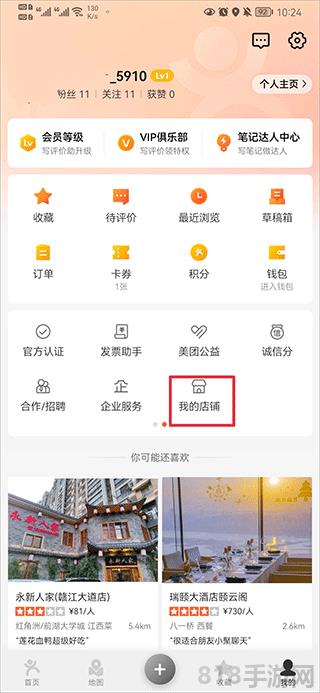 1、打開大眾點評app,在我的界面點擊我的店鋪